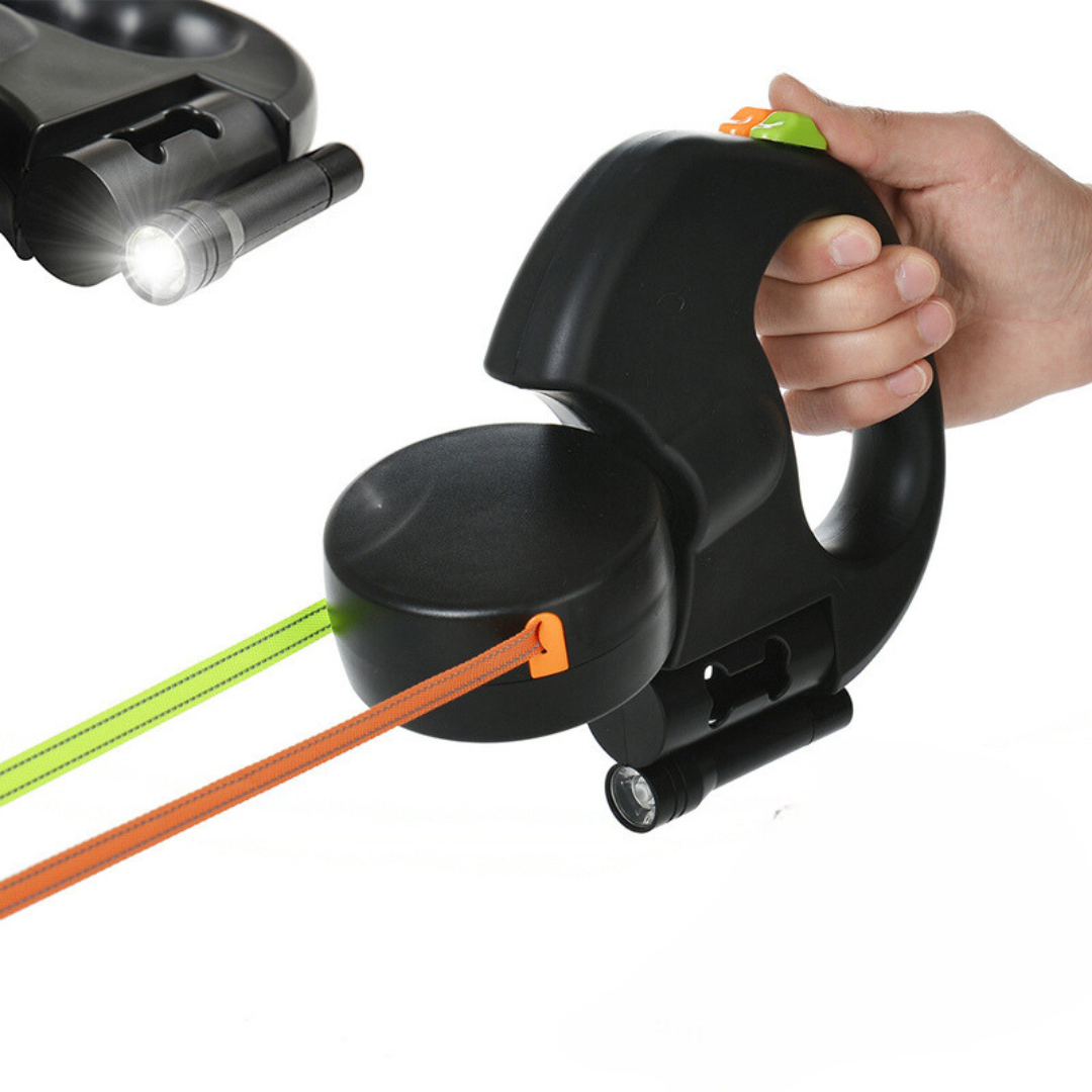 Super handig voor baasjes van twee honden. Je hebt geen gedoe meer met in de knoop geraakte lijnen en je kunt met gemak beide honden apart sturen. Perfect voor ontspannen wandelingen met je viervoeters!